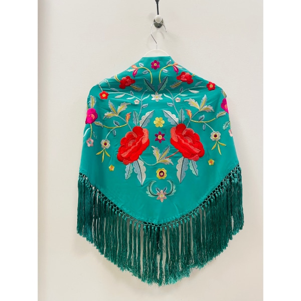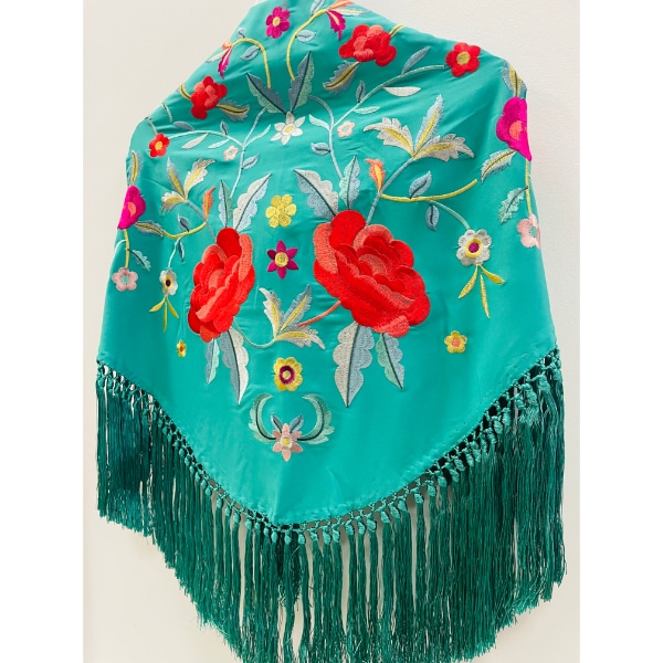 Mantoncillo bordado verde azafata bordado en colores.