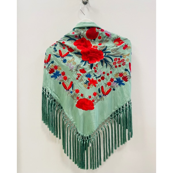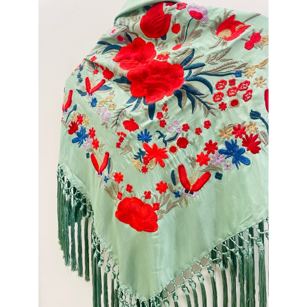 Mantoncillo bordado verde jabonoso y rojo